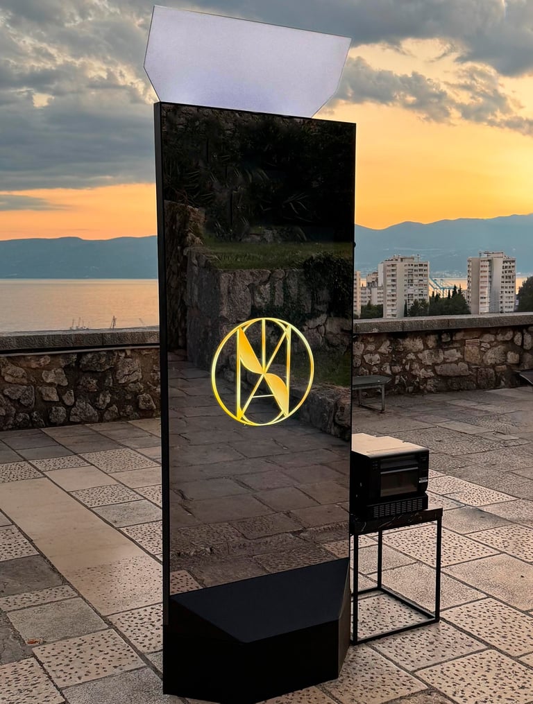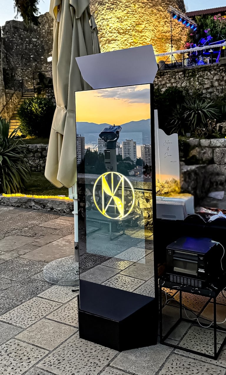 Ogledalo koje je više od toga. Moćan izgled koji diže event na višu razinu. Nudi trenutni ispis i preuzimanje visokokvalitetnih fotografija, GIF-ova i boomeranga.
